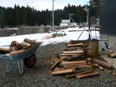 散歩道にしたら、腐って、シロアリがわく?ということで、大事な御神木(?)でしたが、写真2のように1時間後には、薪になりました。